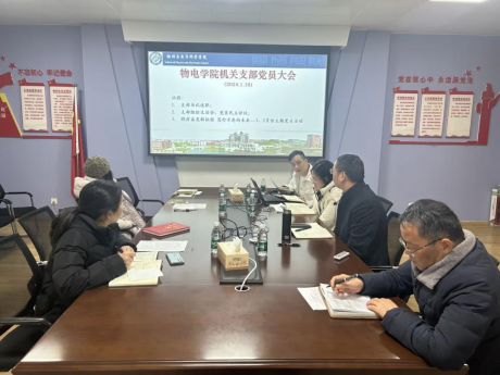 2024年1月18日上午11点,物电学院机关党支部在理科楼科C511会议室召开全体党员大会,全体党员参加。院党委书记张国强、副书记宋国宁出席会议,会议由支部书记周勇主持。