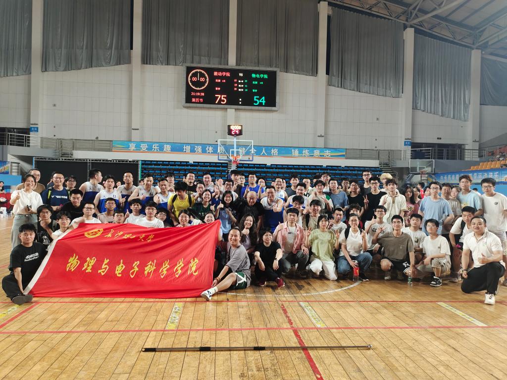 在刚刚结束的LETOU体育平台第九届篮球比赛中,物电学院篮球队获得第四名的好成绩,创造学院篮球比赛的历史最佳战绩。此次篮球比赛,学院领导高度重视,党委书记张国强、副院长(主持工作)张卫兵分别作为领队和教练并亲自上场,副院长兼工会主席刘斯作为队员参加中场投篮比赛,副院长范志强场场前往赛场加油助威。在队长习志龙老师的带领下,球队重视赛前训练和比赛的排兵布阵,比赛过程中队员们积极投入,团结协作,顽强拼搏,克服种种困难,比赛场面精彩纷呈。值得一提的是老师们也特别关心每场比赛、亲自到场为球队加油,学生拉拉队更是给力,他们为老师们加油助威的场面成为球场的一道风景线,这张奖牌来之不易,凝聚了学院全体师生的共同心血。物电篮球队首次进入学校男篮四强,历史性突破!场内队员奋力拚搏、场外师生加油助威均彰显了物电学院团结、敢拼、有情怀、务实的集体良好形象。