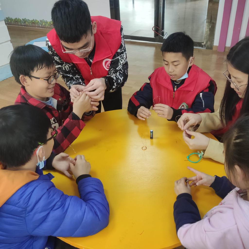 3月28日物电学院“小小科学家”团队进行了本学年第一次线下科普活动。本次活动共计10名志愿者参与,共有16名小朋友,分为四组,每组4人,今天实验主题为旋转的铜线圈,第一组的志愿者早早的就开始准备各种实验器材与活动场地。志愿者先为大家讲解了此次实验的目的,然后进行了实验操作示范,在操作过程中掺杂讲解让小朋友们更加理解操作步骤,然后引导小朋友手动完成实验,最后志愿者讲解了此次实验的实验原理。