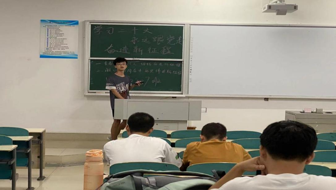 党的二十大是在全党全国各族人民迈向全面建设社会主义现代化国家新征程,在第二个百年奋斗目标进军的关键时刻召开的一次十分重要的大会,一次高举旗帜,凝聚力量团结奋进的大会。应团省委号召,2023年9月16日,物理与电子科学学院电信2207班特此召开本次“学习二十大,永远跟党走,奋进新征程”主题团日活动,目的在于引导同学们深刻认识到百年奋斗重大成就和历史经验的重要意义,激励同学们铭记中国共产党人艰苦奋斗的历史征程,以饱满的精神面貌创新有为,勇攀高峰。