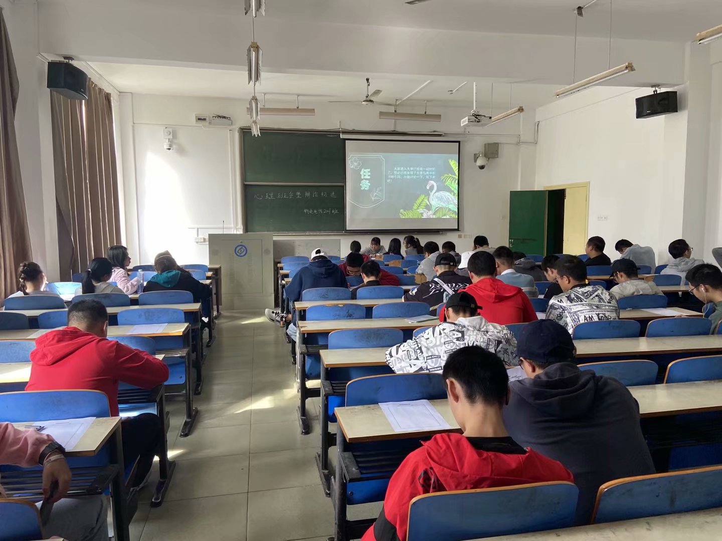 大一的班级针对面临的期中考试和四级考试进行了考前动员和考试心态调整,以防止同学们因为备考压力过大导致的心理压力过大;对于大二和大三的同学则是进行了大学生恋爱观的养成和失恋同学的心态调整的主题班会;对于大四的同学他们开展了考研压力吐槽大会和考前一个月心态调节的回忆。