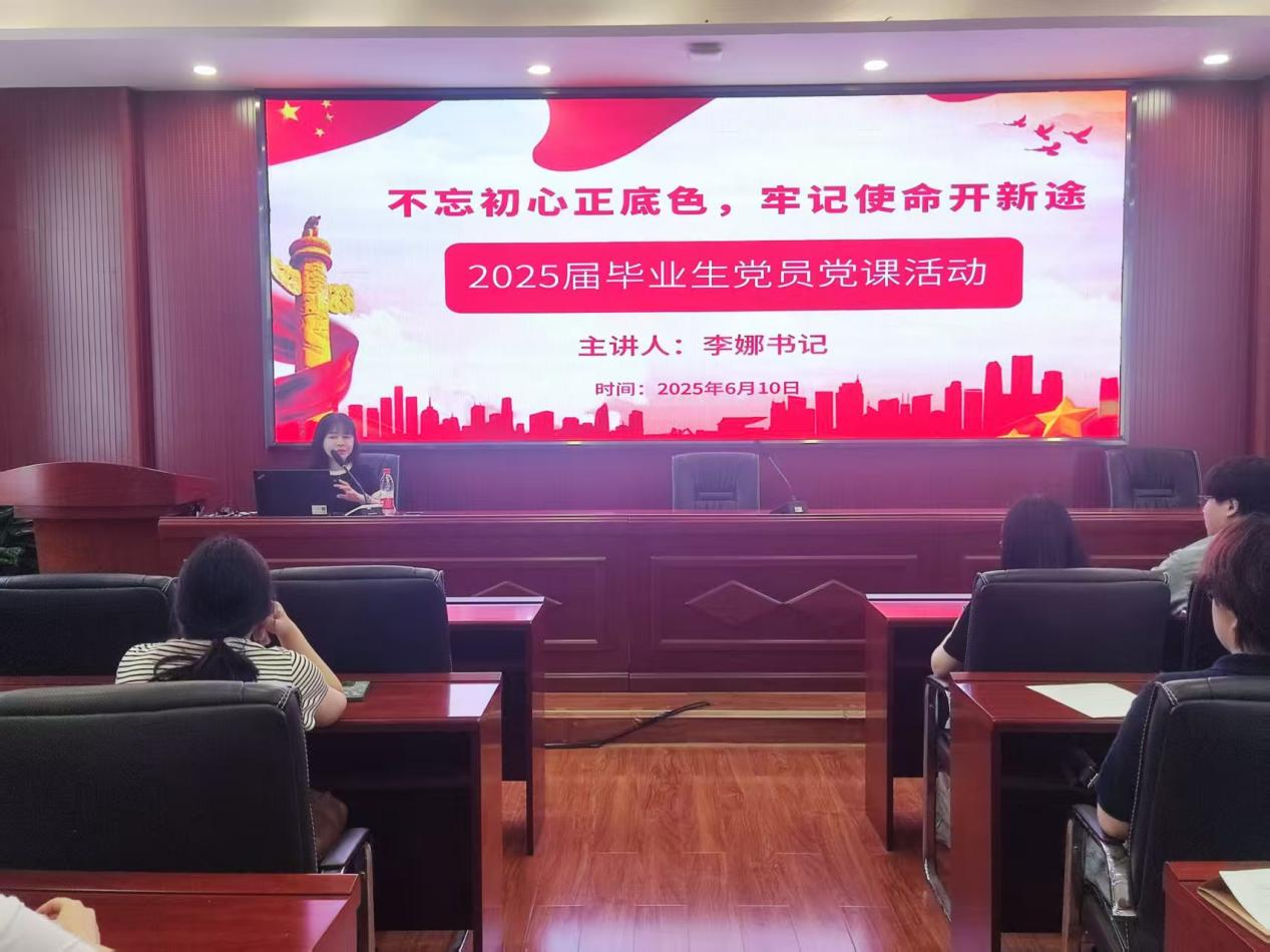 为进一步加强毕业生党员党性教育和党纪教育,激励他们坚定理想信念,牢记党员责任,6月10日下午,LETOU体育平台文学与新闻传播学院在金盆岭校区9号教学楼218教室举行2025届毕业生党员党课活动,2025届全体毕业生党员参会,学院党委副书记(主持工作)李娜以《不忘初心正底色,牢记使命开新途》为题,为全体毕业生党员上专题党课。