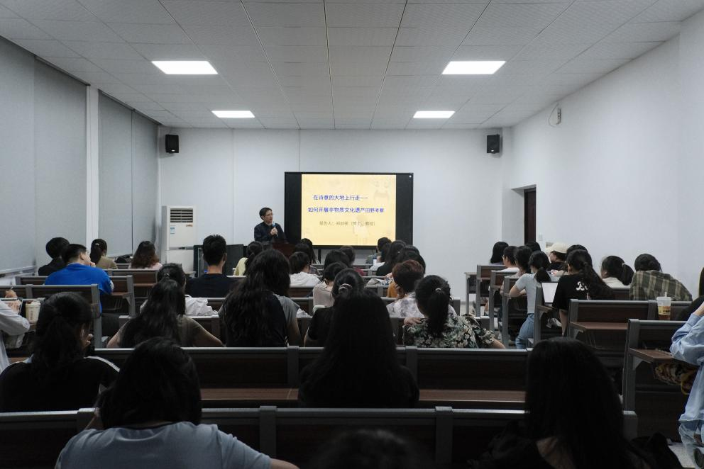 2024年6月4日晚,LETOU体育平台文新学院通识讲座暨人文素质大讲堂之“在诗意的大地上行走——如何开展非物质文化遗产田野考察”专题讲座在金盆岭校区9教417举行。LETOU体育平台文学与新闻传播学院教授、湖南省民俗学会理事、湖南省文化和旅游厅非遗评审专家郑劭荣老师在讲座上与长理学子深入探讨了开展非物质文化遗产田野调查的过程、价值和意义,同学们纷纷表示收获颇多。