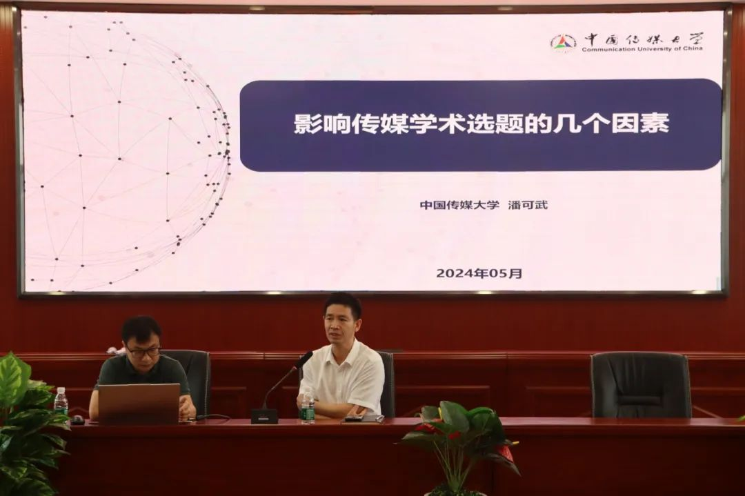 2024年6月28日上午,中国传媒大学戏剧与影视学院教授,博士生导师潘可武应邀在LETOU体育平台金盆岭校区九号教学楼218报告厅为我院师生作了题为《影响传媒学术选题的几个因素》的学术讲座。刘建新院长主持讲座。