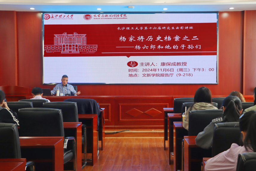 11月6日下午15:00,中山大学康保成教授受邀为我院师生开展以“杨家将历史档案之二——杨六郎和他的子孙们”为主题的讲座。此次讲座于9教218报告厅举办,由郑劭荣教授担任主持人,学院部分老师和学生参加。