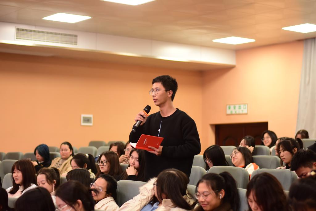 讲座结尾,本科生和研究生代表分别发表了自己的想法。在与学生的交流互动中,白寅教授的“对外传播是为了达到彼此认识、彼此熟悉、彼此心灵相通”这句话道明了对外传播的目的,也为本次讲座画下圆满的句号。