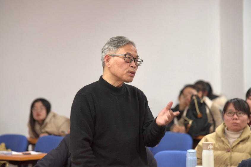 老师分享环节向双霞博士带我们走近何绍基这位诗人。向博士将何绍基浓郁的性灵诗学倾向在论诗诗句、诗学理论体系和诗歌评点中的体现为同学们娓娓道来。同时,她也对何绍基诗学和性灵诗学的异趣之处譬如性情的雅化、对考据的强调、诗歌评点重议论、重刻画摹写细腻等进行讲评。随后,各位评委老师对向博士学术分享进行点评讨论,肯定向博士选题的新颖,同时也对其未来学术研究提出相关建议。