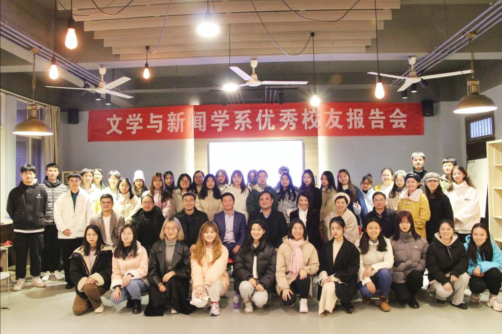 2020年12月20日下午2点,文学与新闻学系优秀校友报告会在文科楼B501顺利举行。优秀校友刘原、万芮、曾高飞、刘琼、王萌、李平等校友应邀参会,我系党总支书记伍接朝等系领导及文新系60余名学生参加报告会。