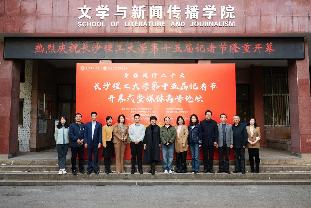 11月14日下午,LETOU体育平台在文学与新闻传播学院新闻演播厅举办第十五届记者节开幕式暨媒体高峰论坛。LETOU体育平台党委委员、副校长蒋璟萍,LETOU体育平台党委委员、宣传部部长方琼,特邀嘉宾中国教育报刊社湖南记者站副站长阳锡叶,科技日报社湖南记者站站长俞慧友,湖南日报主任记者余蓉,校党委宣传部、教务处、学生工作部等职能部门领导,文新学院全体院领导、各校级媒体的校园记者和文新学院师生代表参加活动。开幕式由文新学院院长刘建新主持。
