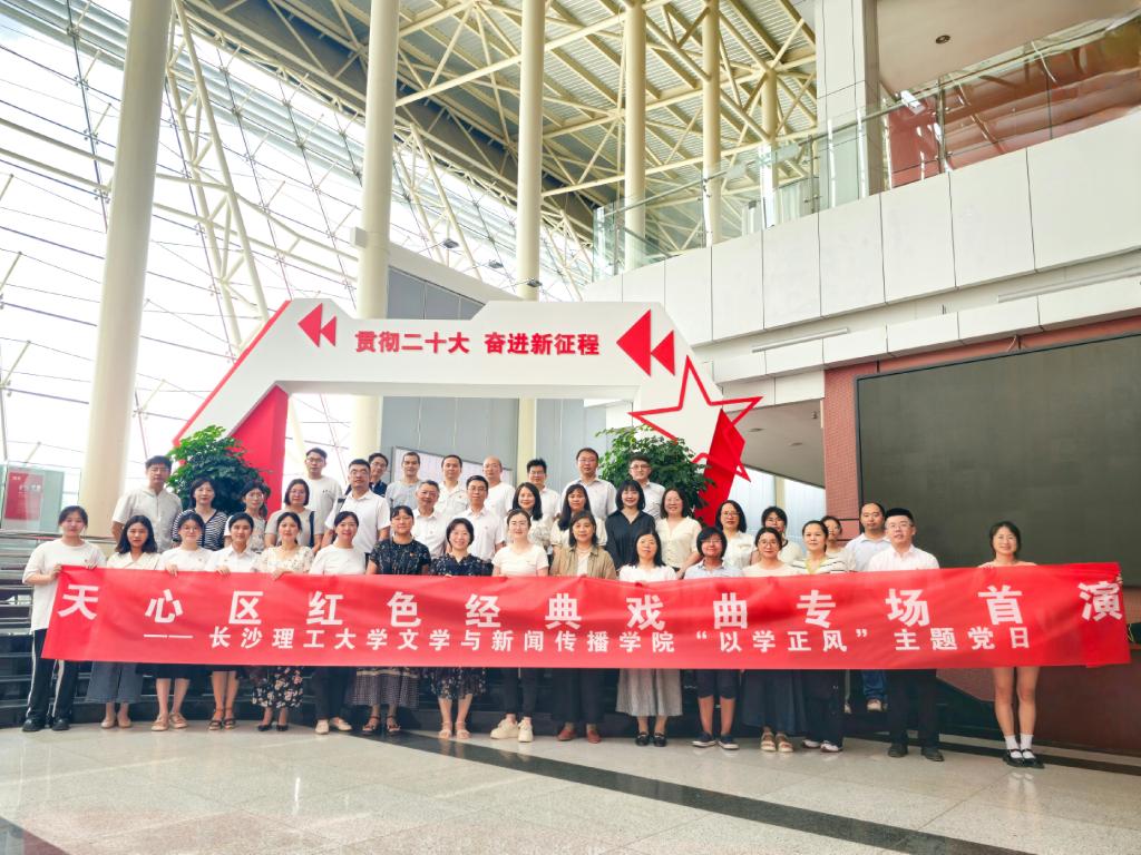为深入开展学习贯彻习近平新时代中国特色社会主义思想主题教育,推动“以学正风”走深走实,6月28日,文新学院与天心区戏剧家协会在湖南省文化馆联合开展“以学正风”主题党日活动。