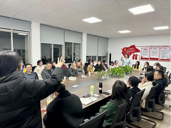 “有趣有益”是“长理中文岭上谈”的活动宗旨,通过线上线下广泛征集意见,中文教工党支部不断充实内容,完善形式,吸引了越来越多的师生参与其中。在此次活动中,同学们惊喜地发现,会场增设了可供大家合影留念的打卡展板。展板上“长理中文岭上谈”为苏轼字体,“山中何所有,岭上多白云”为黄庭坚字体,配以“陋室铭图”为背景,表达了“谈笑有鸿儒,往来无白丁”的美好愿景。活动场所设在中文系会议室,采用师生围坐于大会议桌的形式,是从空间上拉近师生距离的一种新尝试。本次抽奖赠书环节采用了学习通投屏的方式,同学们可以在大屏幕上看到自己名字快速滚动,参与感更强了。