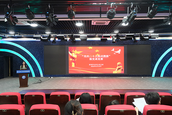 微党课竞赛紧紧围绕党的二十大精神和热词展开,在各个分赛现场,学生党员以饱满的热情,围绕“全过程人民民主”、“乡村振兴”、“新发展格局”等二十大报告中的热词,从不同领域和视角讲述了在学习宣传贯彻党的二十大精神过程中的所思、所感、所悟。其中21级研究生李双翼主要从含义、特征、启示三个方面来解码“中国式现代化”这一高频热词,明确了青年在现代化进程中要担起时代之重任,成为中国式现代化的先行探索者、重要推进者和关键主力军。22级研究生向雅妮主要从构建新发展格局的发展背景、核心目标、构成要素来解析“新发展格局”这一热词,提出必须完整、准确、全面贯彻新发展理念,坚持社会主义市场经济改革方向,坚持高水平对外开放,加快构建以国内大循环为主体、国内国际双循环相互促进的新发展格局。大家在讲述中,还结合了文新学院的学科专业特点,展示出文新学子在新征程上矢志奋斗的决心。汉语言文学研究生党支部书记吴笛对各位选手的表现和讲解内容进行了一一点评,并肯定了微党课竞赛对于深刻理解党的最新理论政策的意义和价值,希望支部成员今后能将理论学习与专业知识相结合、与社会实践相结合,真正做到学有所用、学有所得。