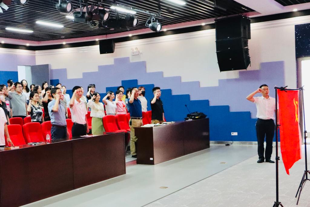 为迎接党的二十大胜利召开,9月13日下午,文新学院党委组织全体教工党员和学生党员代表,在文科楼B300教室举行以“喜迎二十大、永远跟党走、奋进新征程”为主题的重温入党誓词活动。
