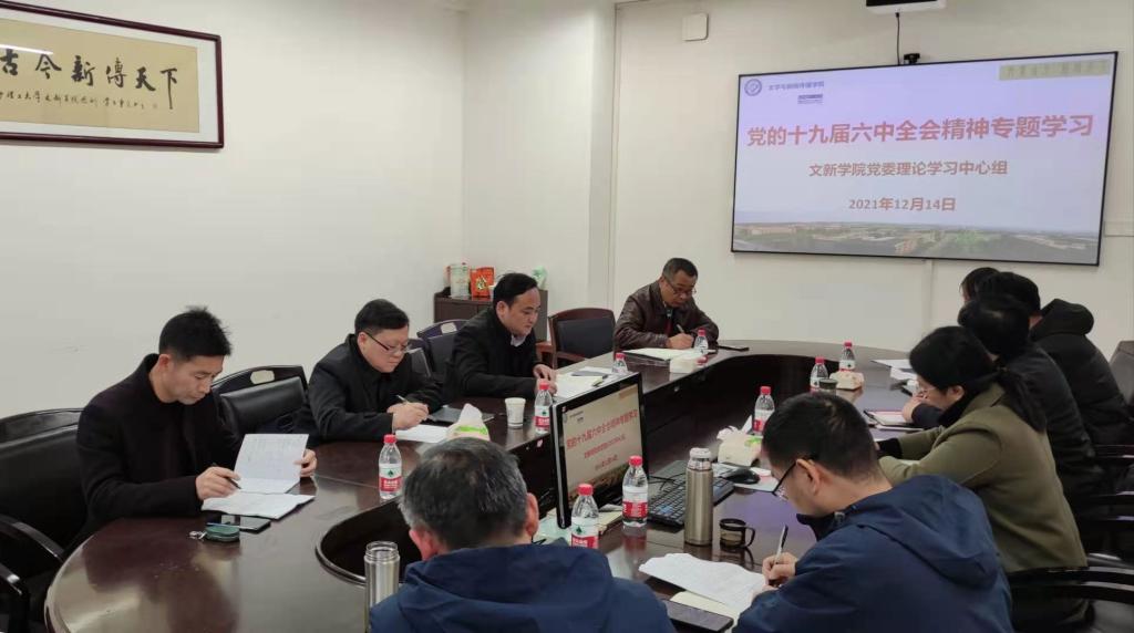 12月14日,文新学院党委理论学习中心组召开会议,学习党的十九届六中全会精神和《中共中央关于党的百年奋斗重大成就和历史经验的决议》。学院党委理论学习中心组全体成员参加学习。学院党委书记伍接朝主持学习并做主题发言。学校党委副书记刘建民参加并指导学院党委理论学习中心组学习。
