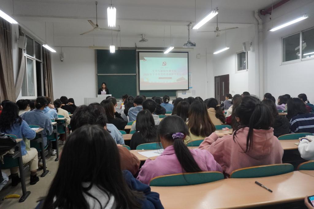 11月4日晚6时30分,文学与新闻传播学院2021年下半年党校培训班开班仪式在工科三号楼A307举行。文新学院党委副书记、副院长刘莎,党建辅导员楚艳鸽出席此次活动,第38期入党积极分子及第15期发展对象学员共80余人参加,仪式由袁巧主持。