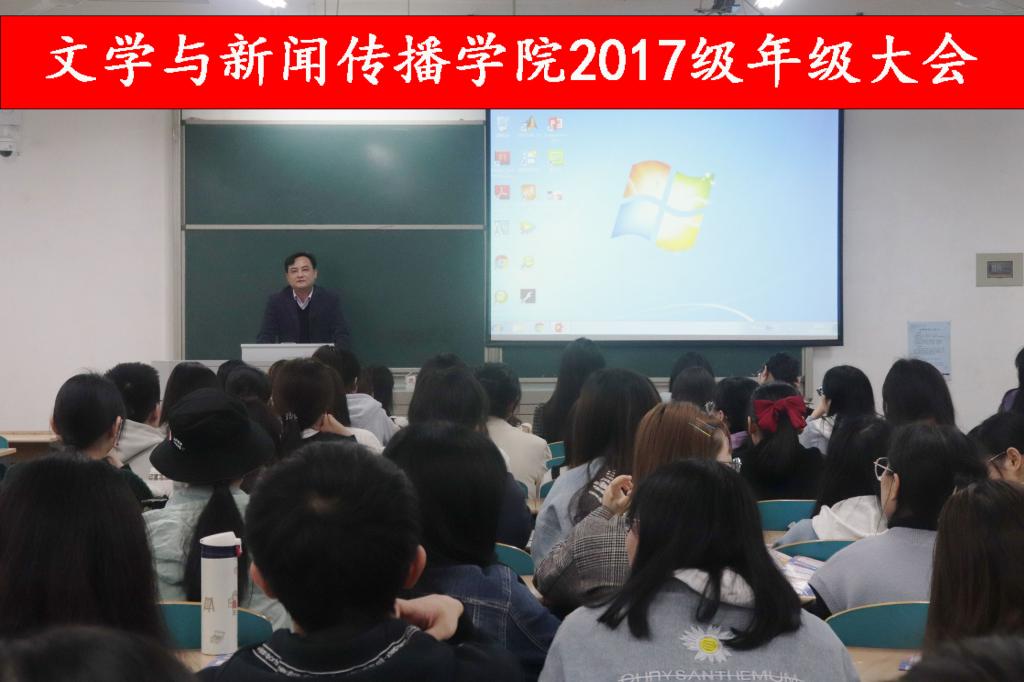 2021年3月15日下午,文学与新闻传播学院春招动员会于文科楼B403召开,党总支书记伍接朝、辅导员陈鑫宇出席,2017级本科毕业生参加了本次大会,会议由陈鑫宇主持。