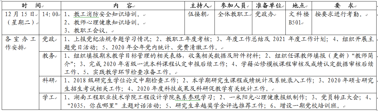 文新系2020-2021学年度第一学期第十五周工作安排表