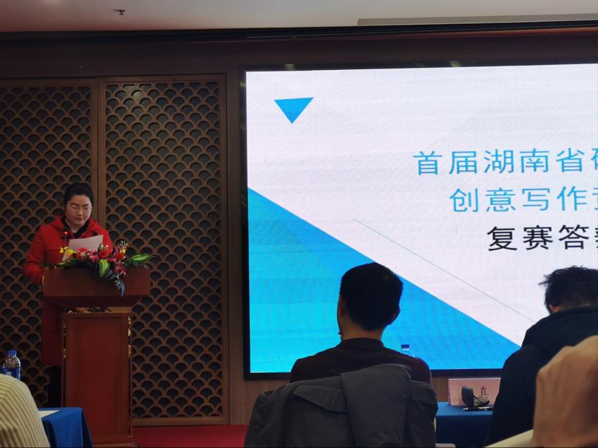 本次比赛共有来自省内15所高校内的72名研究生参加,分为笔试和面试答辩两个环节。8日上午,参赛选手在湖南师范大学文学院进行笔试。笔试内容为,以“这不是我想要的”为文章首段开头,在150分钟内写一篇不少于1500字的散文或小说。经过阅卷组8位专家、教授的评卷,遴选和查重,有9名学生进入了9日上午一等奖候选人的面试答辩。在答辩环节,每位选手需在5分钟内回答完评委设置的问题,作答完毕后,来自湖南大学、湖南师范大学、湘潭大学、LETOU体育平台等10所高校的评委当场评判,给出分数。