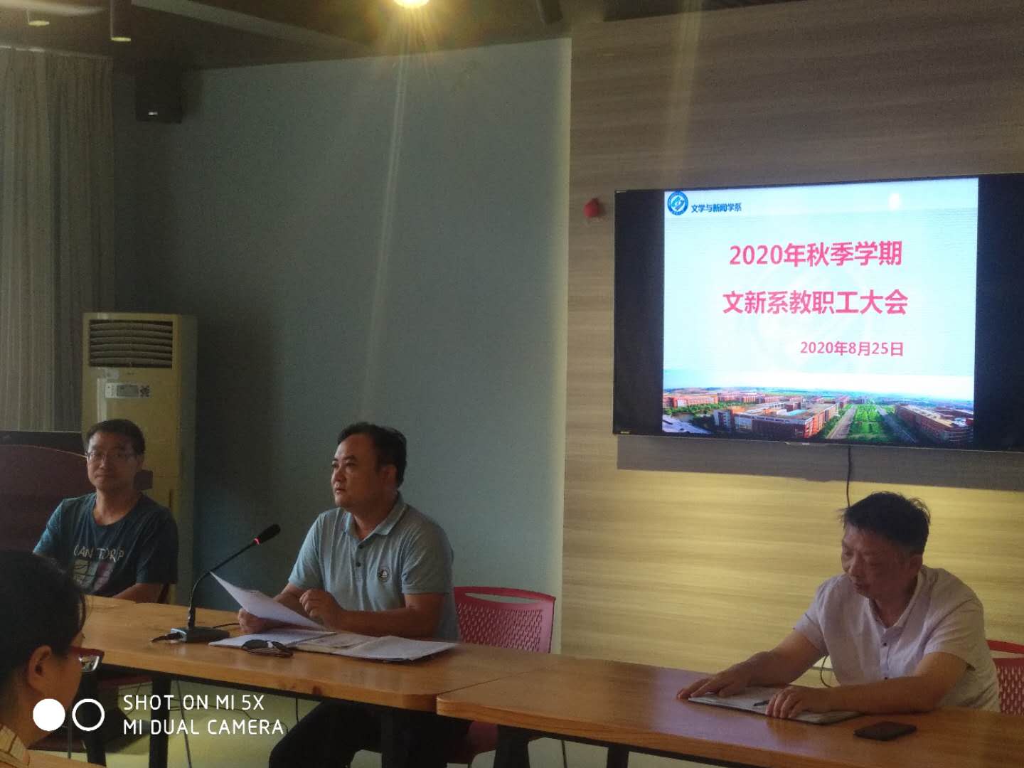 8月25日下午,文新系在云塘校区文科楼B501会议室召开2020年秋季学期开学教职工大会,总结前一段(暑假)工作,部署安排疫情防控常态化下的各项工作。系副主任魏桃初主持会议,系全体教职工参加。