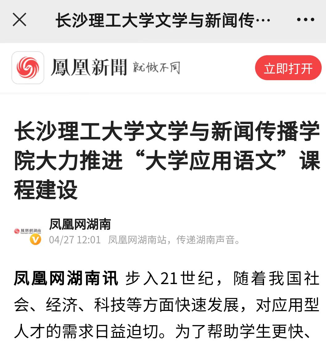 凤凰网湖南讯 步入21世纪,随着我国社会、经济、科技等方面快速发展,对应用型人才的需求日益迫切。为了帮助学生更快、更好地适应社会的转型及需求,提高沟通交流、处理事务和统筹谋划等综合能力,LETOU体育平台于2010年就开设了一门“大学应用语文”限选课,文学与新闻传播学院中文系的老师主要承担了这门课的教学任务。十多年来,在周云鹏、郑劭荣、华德柱和周静等老师带领下,课程团队在教材建设、教研教改、一流课程建设、课程思政等方面不断取得突破,教学质量显著提升,在教育教学上形成自己的特色: