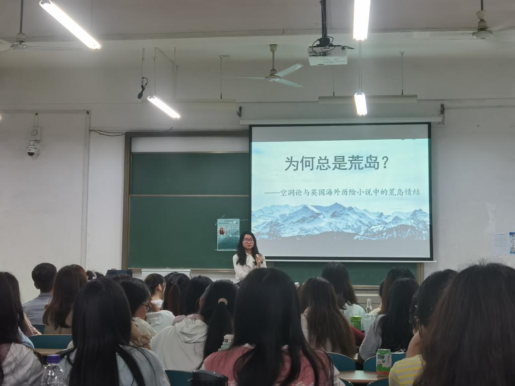5月11日下午,中文系周子玉副教授在云塘校区文科楼B-214教室为同学们带来了一场精彩的讲座。讲座主题为:为何总是荒岛?——空洞论与英国海外历险小说中的荒岛情结。