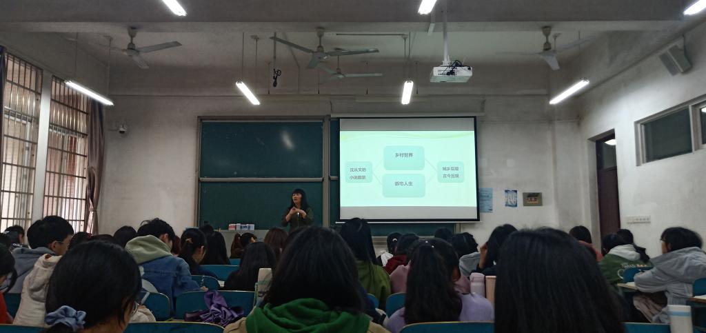 4月16日上午,老师们在文科楼E-103听取了校级金课负责人黄宇老师的“中国现当代文学二”公开课。黄老师着重从“乡村世界”和“都市人生”两方面讲述沈从文的小说图景,课堂氛围活跃、讲解精辟,内容精要清晰,重难点突出,课堂容量充足,师生互动的教学效果明显。在教学过程中,黄老师循循善诱,不断引导学生自我思考。而师生间、学生间的这种积极互动,有利于学生切实掌握知识,学会分析问题。从课堂内容而言,黄老师以作品细读为中心来把握沈从文的写作特色及风格,并对沈从文的作品进行全方位、多角度解读,这就摆脱了传统课堂以理论知识灌输先行的弊端,更有利于学生深刻体味沈从文的魅力。同时,黄老师的课堂以“为什么”、“怎样”、“为何”等疑问、设问形式追问,对沈从文作品内蕴抽丝剥茧,善于调动学生思考的积极性,提高教学效果。