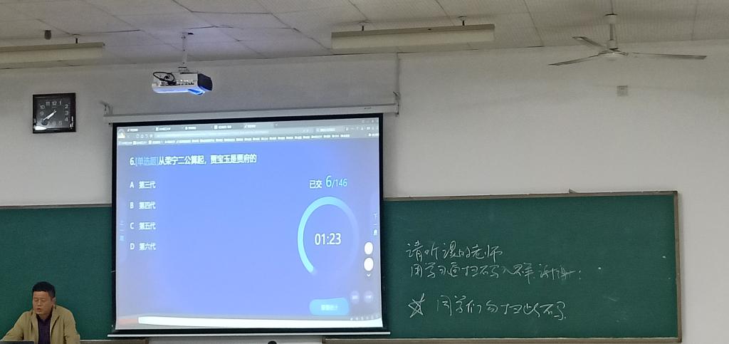 4月7日晚第9、10节课,老师们首先观摩了学校教学奉献奖获得者华德柱老师的“《红楼梦》导读”课。华老师主讲这门课程多年,已经建成了一门校级慕课。在此次授课过程中,他针对第二章的内容,充分运用“学习通”这一教学平台,将学生课上的学习与课下的阅读、知识的补充结合起来,积极地调动起学生对于《红楼梦》的学习兴趣。他首先以与《红楼梦》相关的几个选择题为开场,对全班同学这两星期的学习情况进行了一个大致的了解。其次,在讲解题目答案的过程中对同学前两周的学习进行一个小结,发现他们学习中的优点与不足。随后,进入教学的核心环节——课堂翻转,以师生问答的形式进行课堂的互动。这种以学生为中心,以问题带动课程进展、以“学习通”内置的抢答加分机制为辅助手段的翻转课堂,新颖有趣且有助于学生真正融入课堂,学有所获。