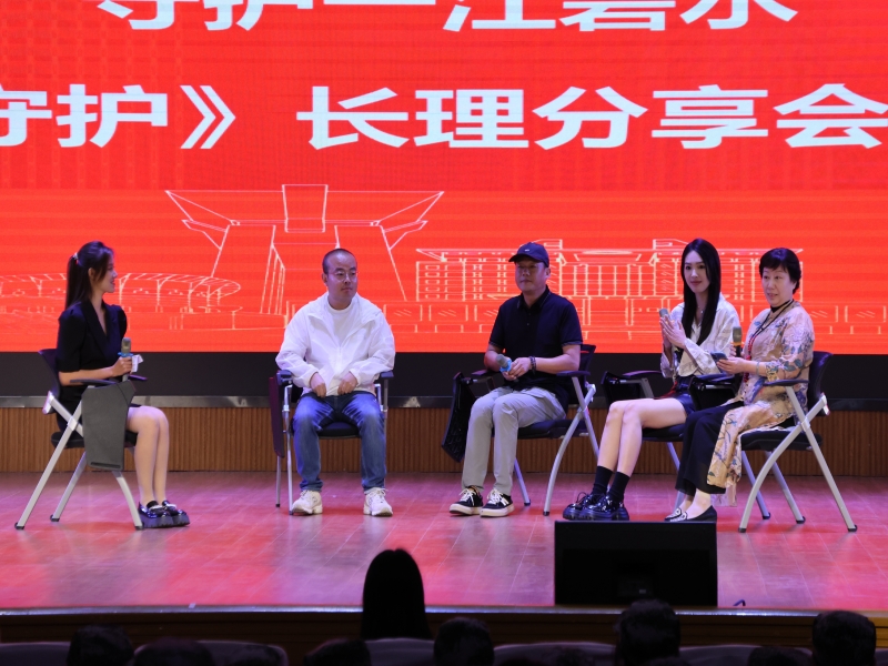在主题演讲结束后,蔺晨阳导演携全国首部“守护一江碧水”主题微电影《守护》 及该片主演艺森、王雁、周袅举行了主题分享会。蔺晨阳向同学们介绍了《守护》这部微电影的创作动机与理念,与众主演一道回顾了拍摄历程,也向同学们分享了自己的心得感悟。最后,对于如何充实地度过大学四年,导演与演员们也给出了自己的建议,希望全体新生在大学阶段寻找自己的热爱并坚持下去,在不断完善自我的过程中实现人生理想。