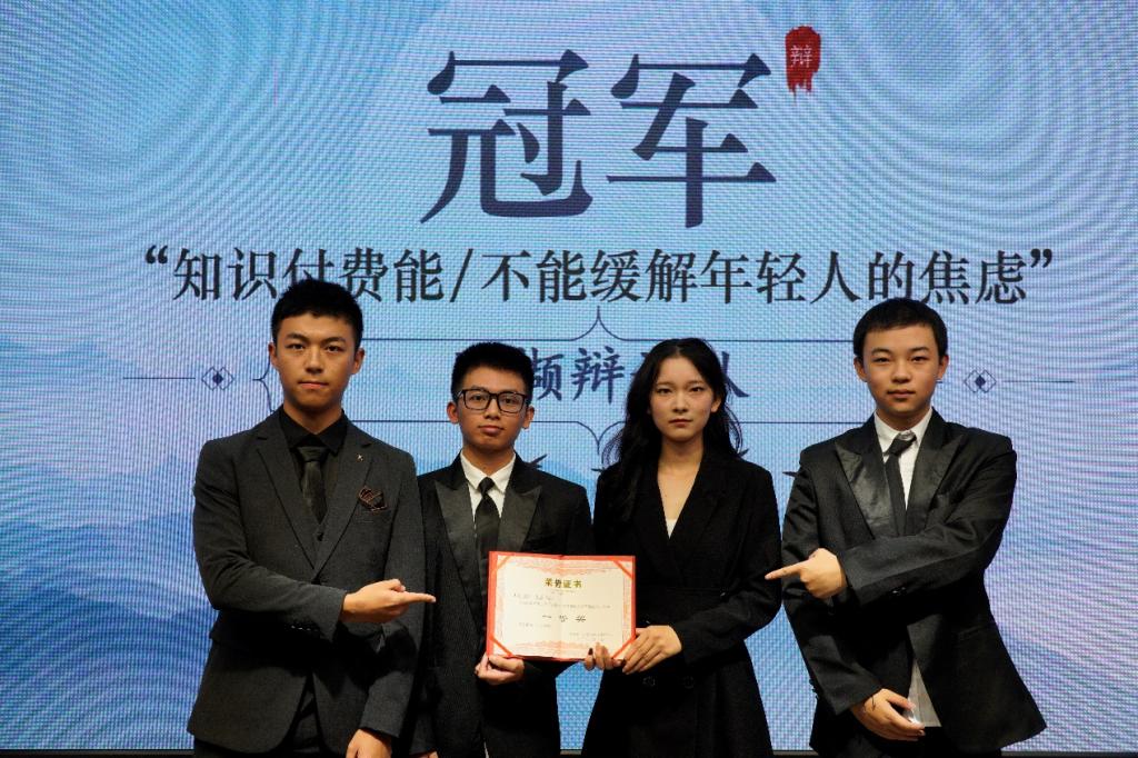 整场辩论赛分为评委与队伍介绍、正式比赛、评委点评以及冠亚军颁奖四个部分。此次辩题是“知识付费能不能缓解年轻人的焦虑”。在各辩手自我介绍之后,由双方一辩开篇立论。立论后,进入质询、对辩等攻辩环节,双方辩手唇枪舌战,互不相让,精彩的辩论赢得了现场的阵阵喝彩。最后,双方四辩进行了条理清晰的结辩,本场比赛的辩论环节就此结束。
