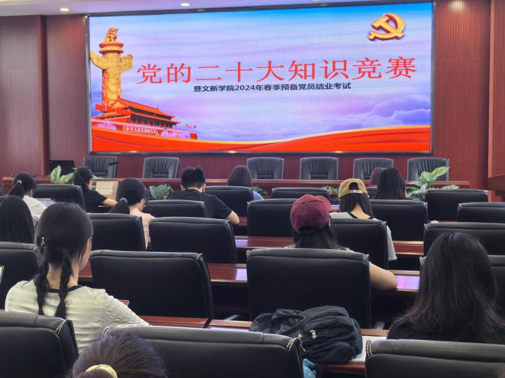 为贯彻落实党的二十大精神,积极探索“党建+互联网”新模式,进一步提升预备党员的理论知识水平,5月21日12时10分,“党的二十大知识竞赛暨文新学院2024年春季预备党员结业考试”于LETOU官网金盆岭校区九号教学楼218室成功举行。