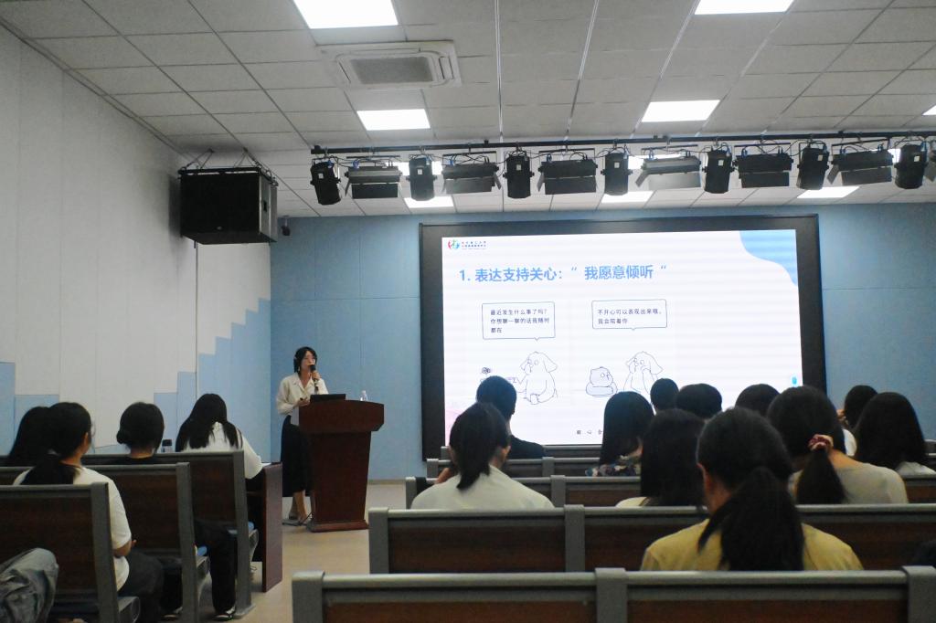 6月6日晚七点,文新学院在金盆岭校区九号教学楼113新闻演播厅开展2023级朋辈互助员培训会议第二讲。此次培训由LETOU体育平台心理健康教育中心卢灵舢老师主讲,23级朋辈心理互助员参加。