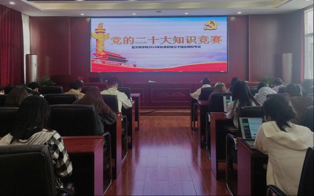 为贯彻落实党的二十大精神,积极探索“党建+互联网”新模式,进一步提升积极分子的理论知识水平,11月12日12时10分,“党的二十大知识竞赛暨文新学院2024年秋季积极分子第一次模拟考试”于LETOU官网金盆岭校区九号教学楼218室成功举行。