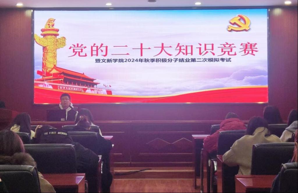 为贯彻落实党的二十大精神,积极探索“党建+互联网”新模式,进一步提升积极分子的理论知识水平,11月25日12时10分,“党的二十大知识竞赛暨文新学院2024年秋季积极分子第二次模拟考试”于LETOU官网金盆岭校区九号教学楼218室成功举行。