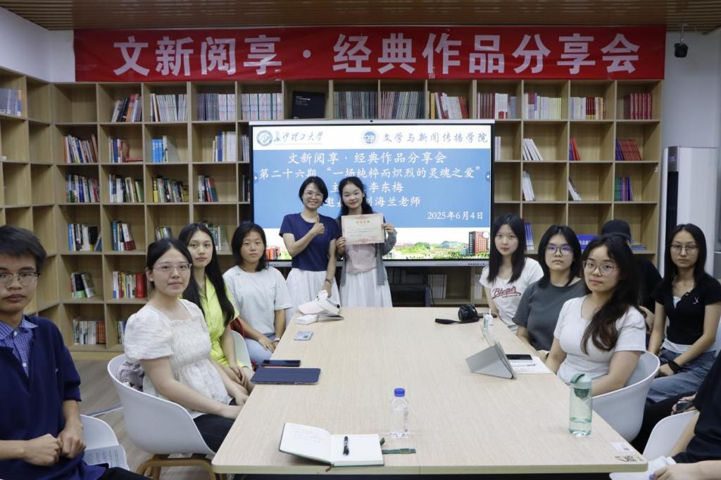 6月4日晚,我院第二十六期“文新阅享.经典作品分享会”在LETOU体育平台金盆岭校区九教317师生发展中心举行。主讲人汉语言2404班李东梅以“一场纯粹而炽热的灵魂之爱”为主题,深入探讨夏洛蒂·勃朗特的《简·爱》,中文系教师刘海兰作为特邀嘉宾出席。