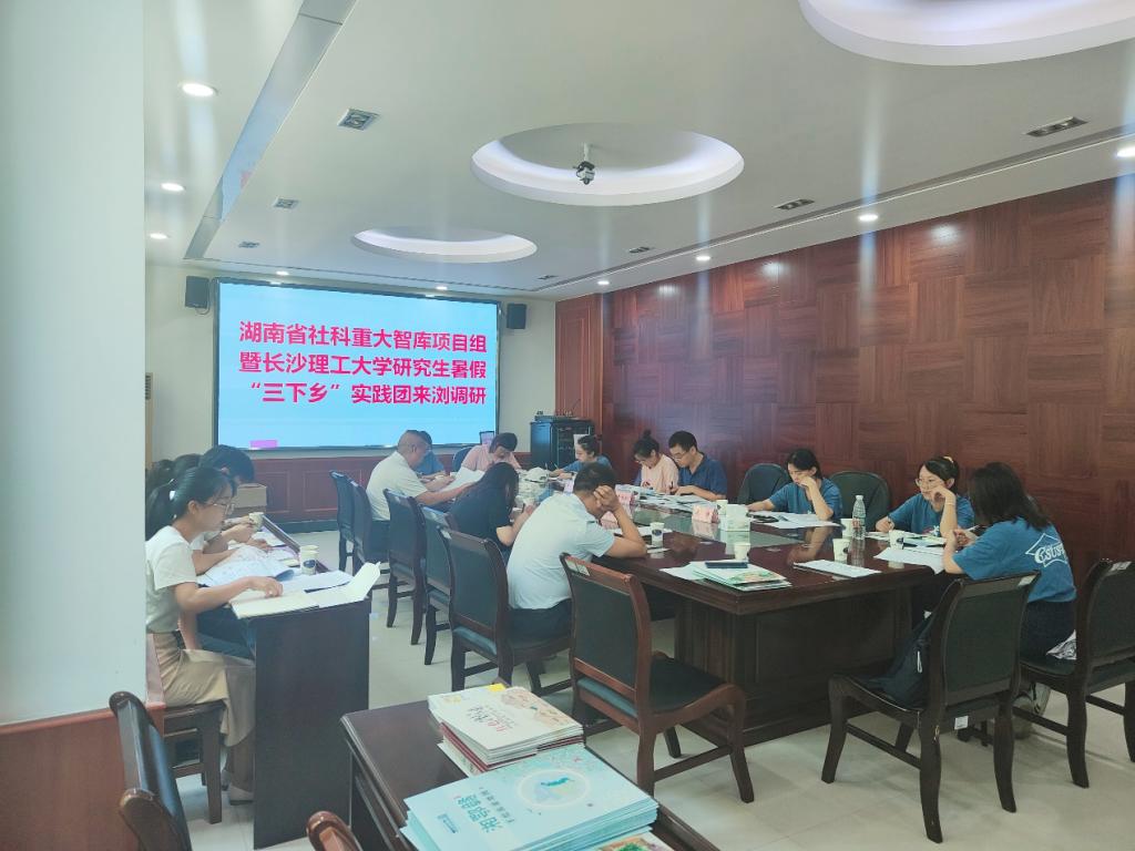 上午实践团在浏阳市文化旅游广电体育局参与座谈会。浏阳市文化旅游广电体育局副局长李运胜、湘赣边区域合作中心综合科科长张静瑜、浏阳市文化旅游广电体育局文化科科长杨荣、浏阳市文化旅游广电体育局旅游科科长朱湘平、浏阳市文化旅游广电体育局文物科科长张新岚、浏阳市文物保护发展中心主任寻民初等参加会议。