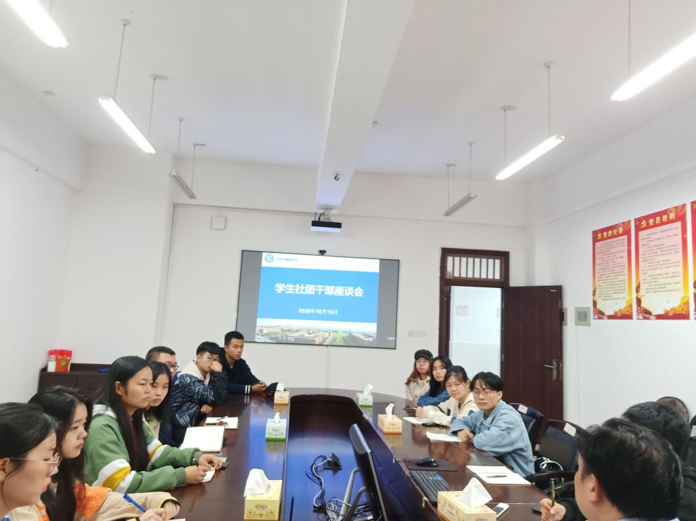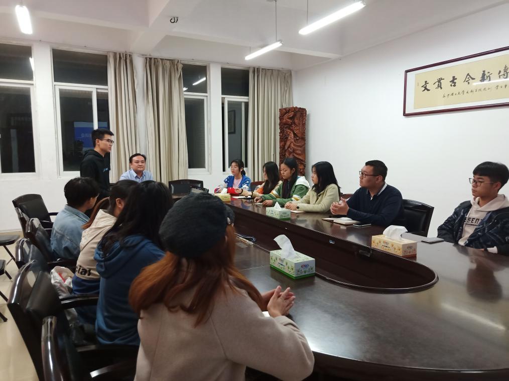 为加强文新系与挂靠社团的联系,本系于2020年10月15日晚在文科楼B505会议室举行了文新系学生社团干部座谈会。文新系党总支书记伍接朝、文新系学生会社团联络主要成员、风华文学社、篁月国学社、汉卿话剧社、朝闻道演讲协会四个校级社团的社长和团支书以及校刊云影湖畔主编参与了此次会议,本次会议由文新系系学生会分管社团工作的李佳棋同学主持。