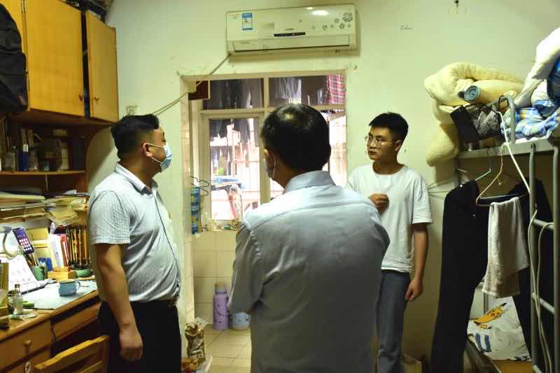 5月21日下午,文新系党总支副书记伍接朝老师、文新系副主任周云鹏老师在辅导员楚艳鸽、吴笛、刘洋老师的陪同下走访学生宿舍,看望慰问返校毕业生。