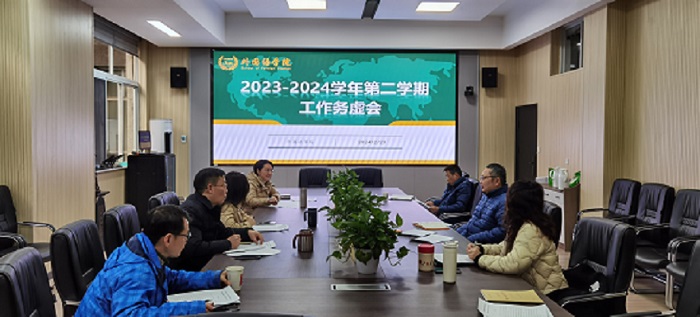 2月23日,外国语学院2023-2024学年第二学期工作务虚会在金盆岭校区3号教学楼214会议室举行。院长段胜峰、学院党委书记文丽丽及学院党政班子全体成员参加会议。