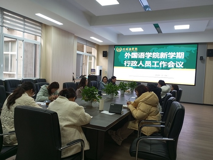 2月24日下午学院在金盆岭校区3教214会议室召开新学期行政人员工作例会,会议由学院党委书记文丽丽主持,全体行政人员参会。