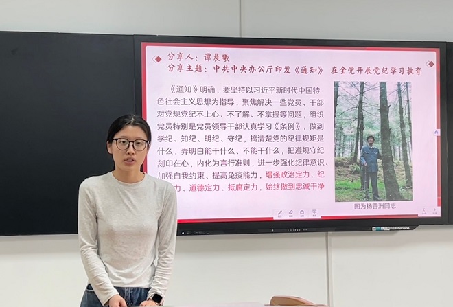 4月23日正值世界读书日,外国语学院以“学纪、知纪、明纪、守纪”为主题开展第二期师生读书分享会。学院联合教职工党支部与学生党支部共读新版《中国共产党纪律处分条例》,深入学习党纪党规,进一步强化师生党员的规矩意识,增强师生党员的政治敏锐性和政治鉴别力,推进全面从严治党。