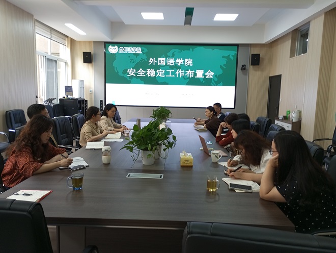 4月26日下午学院在金盆岭校区3教214会议室召开安全稳定工作布置会。会议由院党委书记文丽丽主持,学院党政班子全体成员、行政科室人员参加会议。