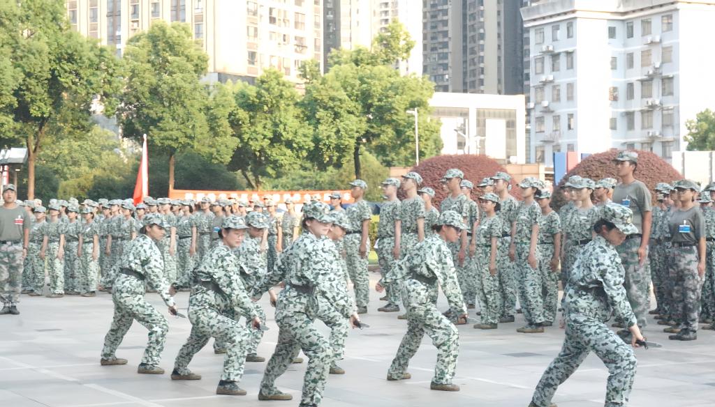 慰问活动在一张大合照后拉开序幕。参训学生相继展示了九天的训练成果,高亢的军歌、分列式、匕首操和军体拳表演,引得大家频频拍手叫好。
