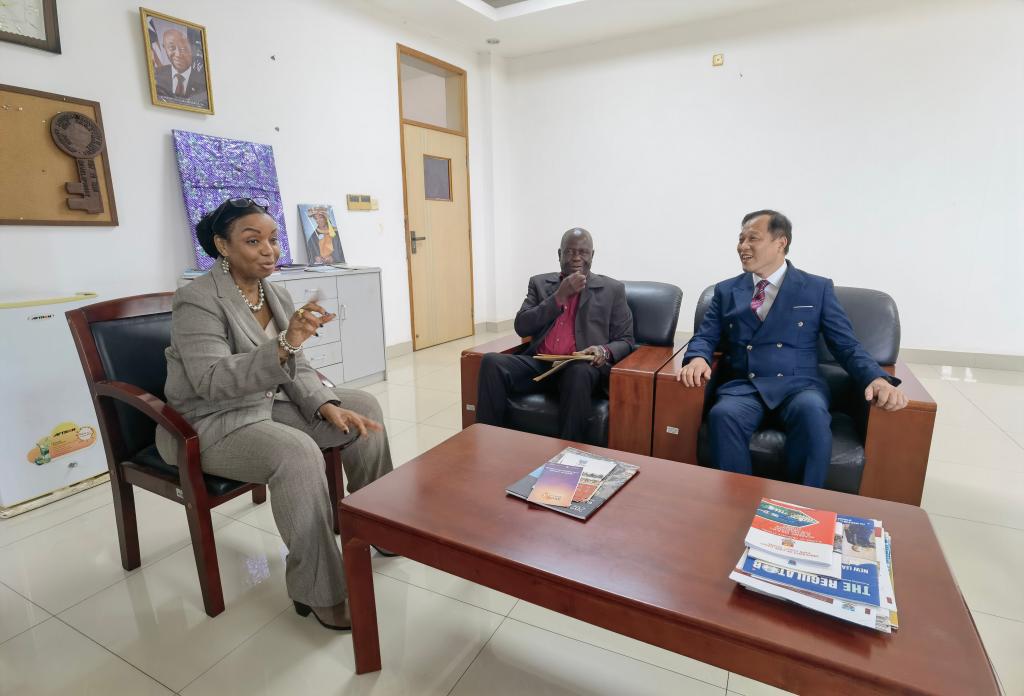 当地时间2025年5月19日下午1:30,利比里亚大学校长蕾莉·马帕里安(Layli Maparyan)在芬德校区校长办公室会见了利比里亚大学孔子学院中外方院长,就孔院发展及中利高等教育合作事宜进行深入交流。