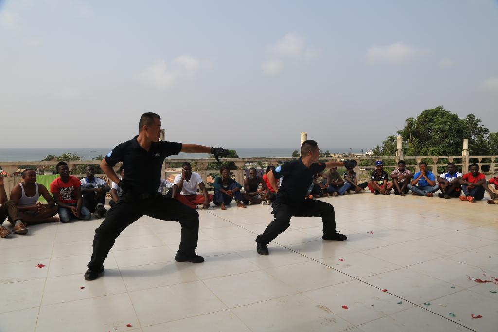 当地时间1月20日上午9点,利比里亚大学孔子学院与中国第五支驻利比里亚维和警察防暴队在刚果镇驻地开展弘扬武术文化活动。利大孔院师生、防暴队武术教练参加了此次活动。