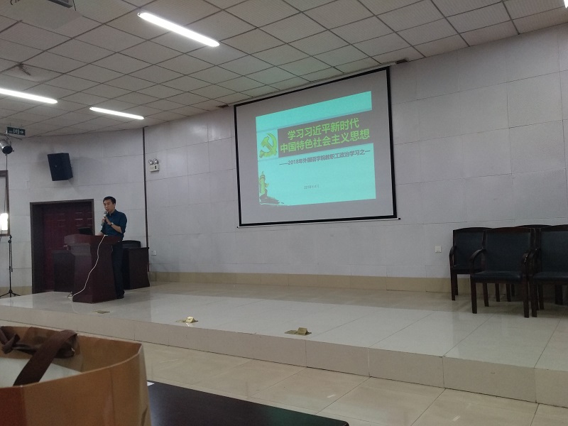 4月3日下午,学院副书记陈仁凯在文科楼圆厅大会议室为全院教职工作《学习习近平新时代中国特色社会主义思想心得体会》报告。