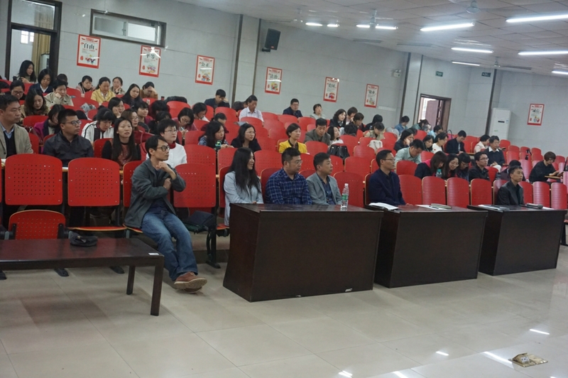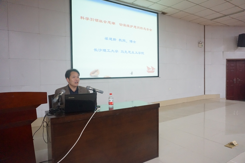 2018年4月24日下午,外国语学院组织第三次教职工政治学习,邀请马克思主义学院副院长梁建新教授讲授《科学引领社会思潮  切实维护意识形态安全》。学院党政班子全体成员率全院教职工参加学习。