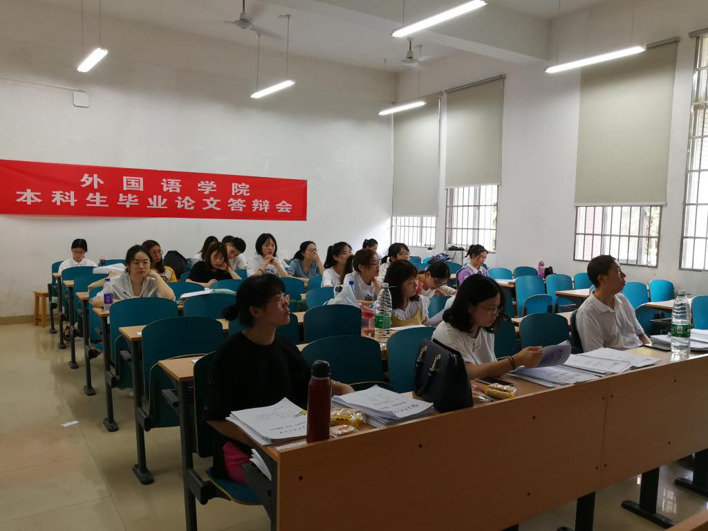 6月17日,正值端午假期期间,在云塘校区文科楼A区二楼的六间教室里,外国语学院2018届本科毕业生论文答辩工作紧张有序地进行着,此次答辩共有我院英语和翻译专业118名毕业生参加。