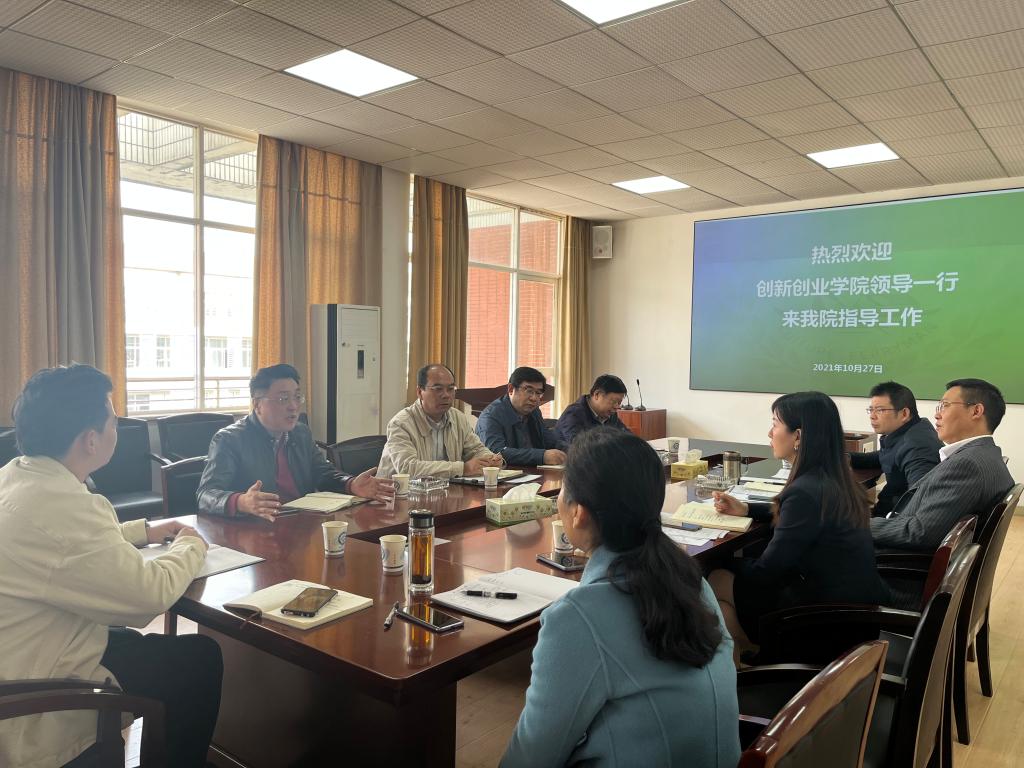 10月27日上午,创新创业学院领导一行来我院开展调研,创新创业学院直属支部书记李凡,院长蒋加伏,副院长杨建军、刘志强,外国语学院院长段胜峰,党委副书记王双,副院长武俊辉及学院相关负责老师出席会议。