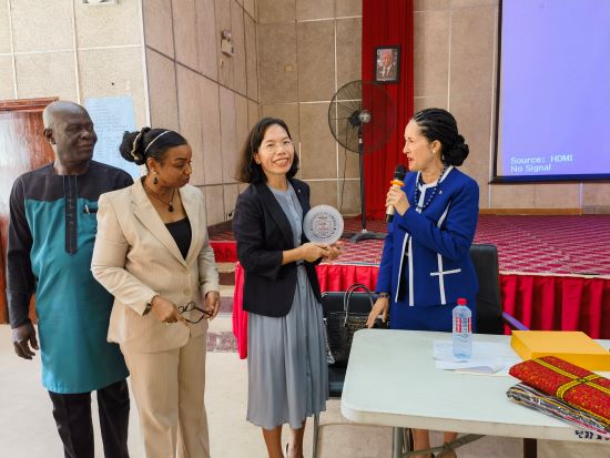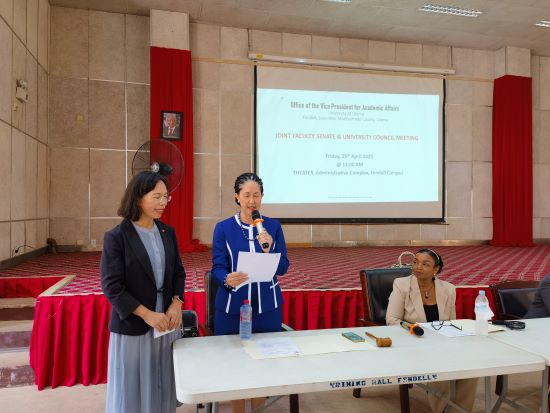 当地时间2025425日,利比里亚大学在芬德校区召开了教职员工代表大会与大学理事会联席会议(Meeting of The Joint Faculty Senate and University Council),并于会上特别为孔子学院中方院长周红专举办了表彰仪式。会议由利比里亚大学校长蕾莉·马帕里安(Layli Maparyan)主持,全体副校长、学校教职员工代表、大学理事会成员、孔院全体教职员工共约100余人出席。