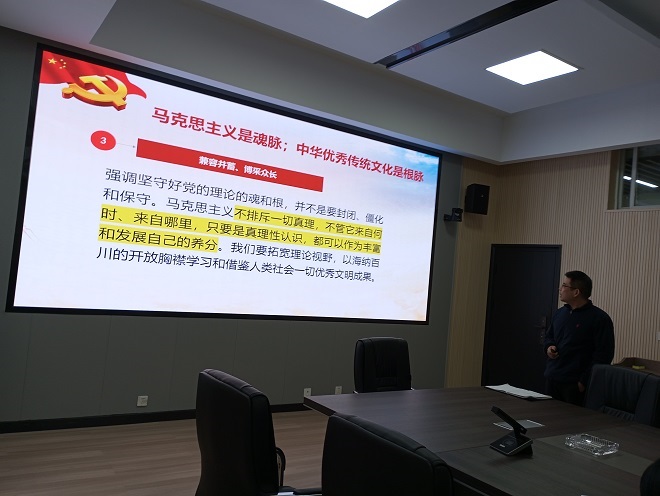 武俊辉院长领学《开辟马克思主义中国化时代新境界》,他从始终坚守理论创新的魂和根、及时科学解答时代新课题、着力推进党的创新理论体系化学理化、注重从人民群众的创造中汲取理论创新智慧等四个方面进行认真阐述。今年6月30日二十届中央政治局以“开辟马克思主义中国化时代化新境界”为题进行第六次集体学习。习近平总书记在学习时指出,党的二十大提出开辟马克思主义中国化时代化新境界的重大任务,强调这是当代中国共产党人的庄严历史责任。习近平总书记回顾党的百年奋斗史,我们党之所以能够在革命、建设、改革各个历史时期取得重大成就,能够领导人民完成中国其他政治力量不可能完成的艰巨任务,根本在于掌握了马克思主义科学理论,并不断结合新的实际推进理论创新,使党掌握了强大的真理力量。